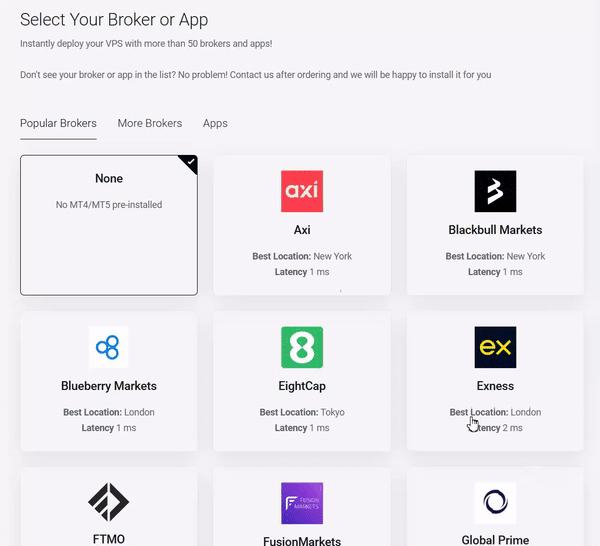 NYCServers proudly introduces a groundbreaking solution for forex traders – instant platform deployment on our VPS service. Now you can launch your trading VPS with over 50 popular broker platforms and trading applications pre-installed and ready to use.