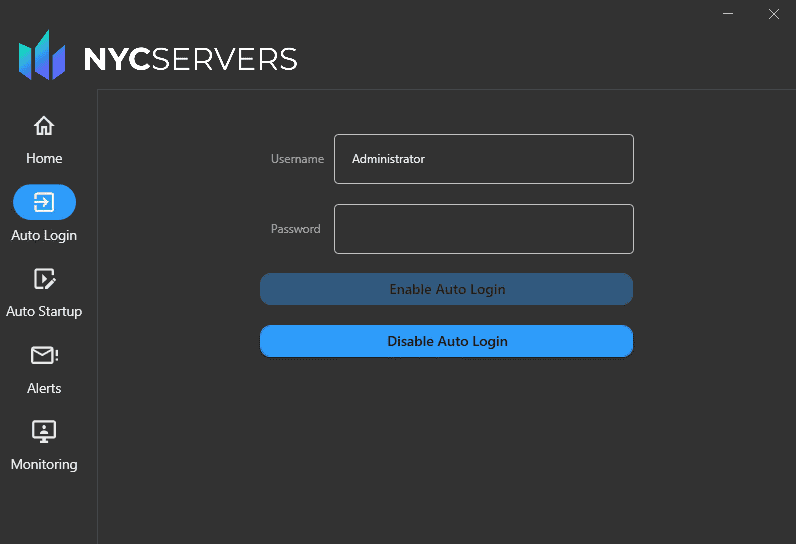Finally, the software also allows traders the ability to configure auto login & auto startup. These features can be used so that anytime your VPS / server is restarted the system will automatically log itself into Windows and start your trading platforms – even if the trader is away from the computer. This makes it so that there is no prolonged downtime for your trading software in the event of a system restart.