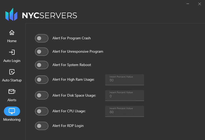 NYCServers has developed our own in-house monitoring, alert, and auto start software – which comes included (for free) with all VPS and dedicated server services. In this guide we will provide an overview of our software and how traders can use it.