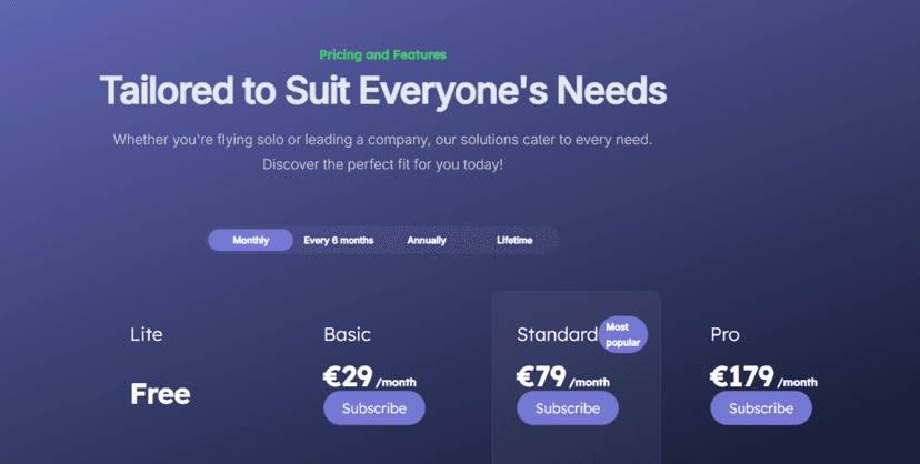 | Unlimited Accounts | From EUR 79/mo | Pay per seat | Higher tiers |