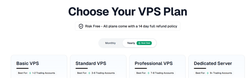 Test our Forex VPS with a 14-day money-back guarantee. Select your broker at checkout and your VPS will be ready to trade in minutes — no manual setup required. Get Started →
