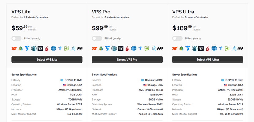 QuantVPS is built for US futures traders, positioning its Chicago-area infrastructure for ultra-low latency connectivity to CME Group exchanges. This approach is designed for futures platforms like NinjaTrader, TradeStation, and Tradovate, where exchange proximity can be a meaningful performance variable for certain strategies.