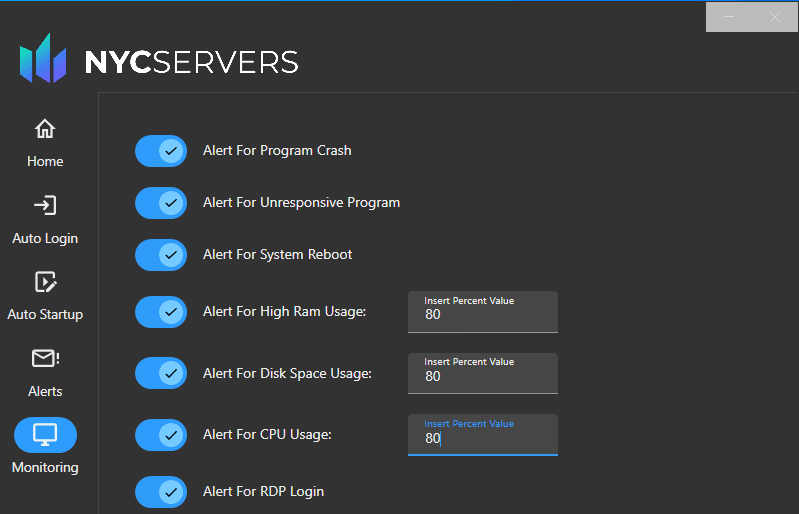 All NYCServers plans include built-in monitoring with automated alerts. You receive notifications for events like high RAM usage or new VPS logins — allowing you to have full knowledge of what’s happening with your VPS even when you’re not connected. For traders who are serious about trading, service monitoring gives them peace of mind without having to guess that their service is working properly.