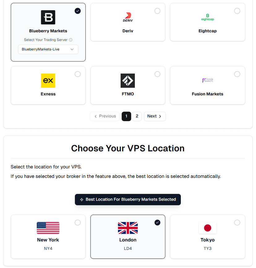 Additionally, NYCServers automatically selects the optimal VPS location at checkout based on your broker selection — eliminating the guesswork entirely.