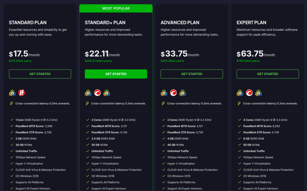TradingFXVPS does offer Windows Server 2022, but it’s not the default — and traders must pay a few dollars more per month.